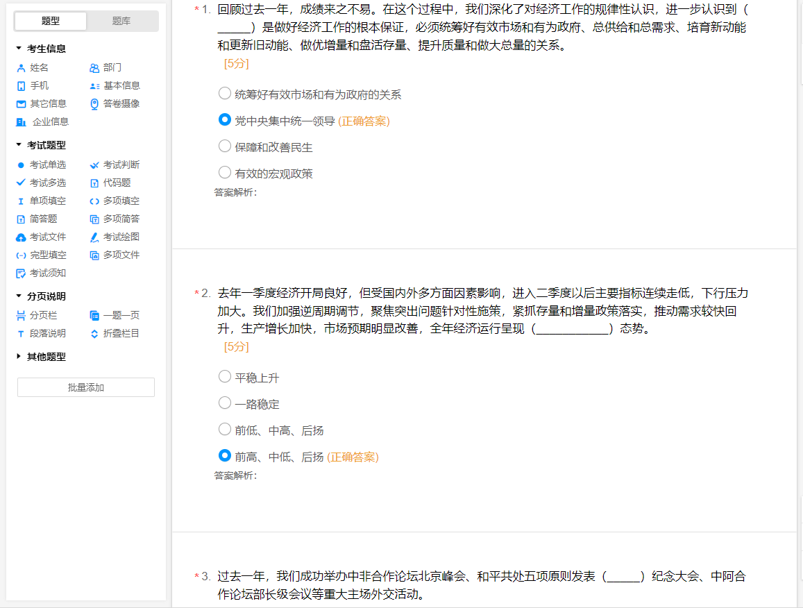 本次知识问答活动围绕2025年政府工作报告中提出的热点议题展开,学院教师党员积极响应、踊跃参与,通过答题进一步深化了对国家战略布局的理解,特别是对高等教育服务国家重大需求、培养拔尖创新人才的时代使命有了更深刻的认识。活动结束后,学院通过问卷反馈发现,教师对两会精神的学习覆盖面与理解深度显著提升,形成了“以赛促学、学深悟透”的浓厚氛围。