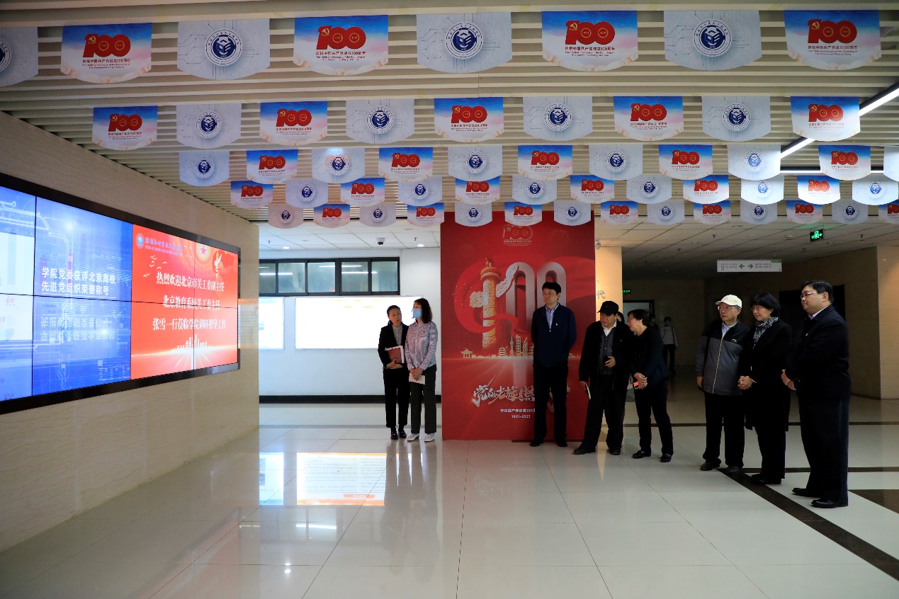 张雪一行观看了学院三全育人工作视频,听取了学院“E声麻辣烫”网络思政工作室有关学院网络思政发展的介绍,观看了工作室制作的建党一百周年献礼“向祖国报道”视频,参观了党员之家,针对学院关工委“三位一体”工作平台,“五老”工作团队建设进行了深入交流并提出了建设性的意见和建议。