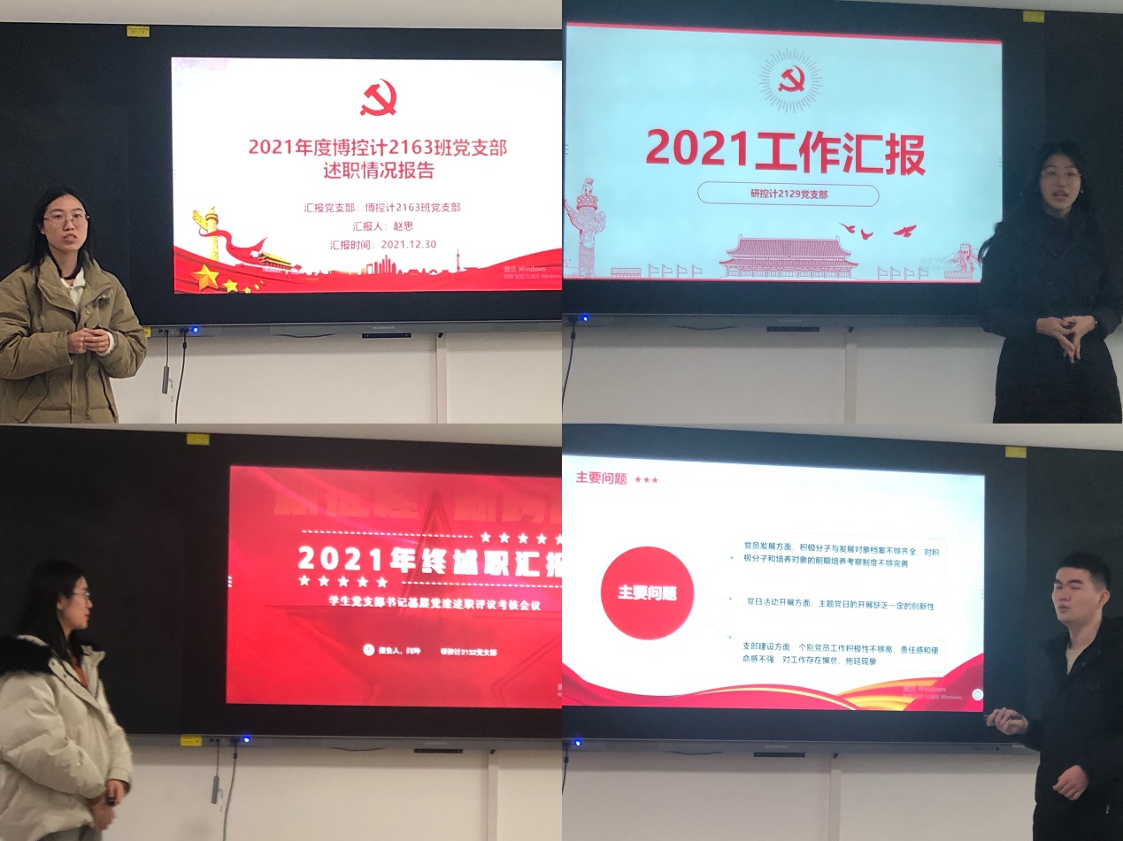 为深入学习贯彻落实党的十九大和十九届六中全会精神,进一步加强学生党支部党建工作,提升党支部书记履职能力,按照大学《关于开展2021年度党支部书记述职评议考核工作的通知》要求,12月30日永利3544am登录官网在主楼E563召开学生党支部书记基层党建述职评议考核会议。学院党委副书记耿晔、组织员董宏伟、辅导员王志楠、李栋栋、李哲雅出席会议并担任评委。