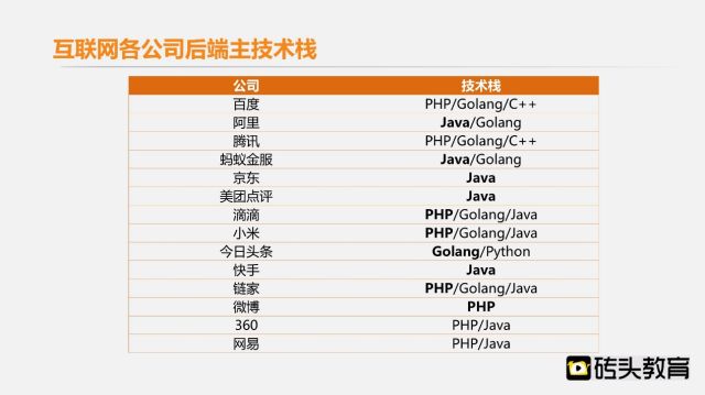 以上,大概梳理了师兄们对如何做好个人求职规划以及如何拿到一个好的offer的成功经验。希望对各位即将出去实习的同学以及即将找工作的师兄师姐有所帮助,下面附上一张当前互联网行业巨头公司使用的编程语言介绍。再次感谢两位师兄昨天晚上给我们带来的满满的干货以及宝贵的建议,在这里我们只是简单梳理了部分内容,相信参与的你一定得到了更大的收获!