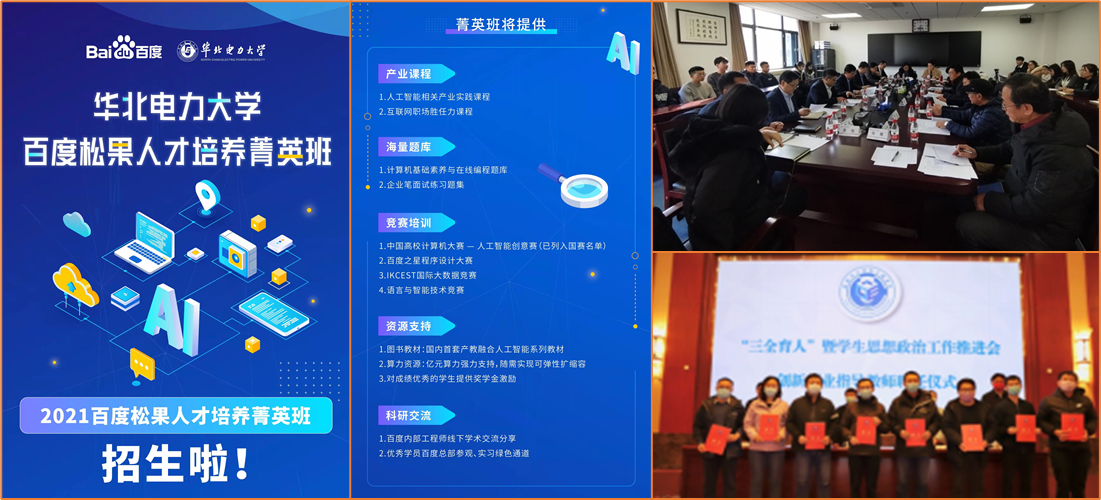 搭建创新创业平台,强化协同育人。为加强创新性、应用型、技能型等复合型人才培养,学院紧密结合行业和社会发展的需求,深入推进校企联合人才培养和协同育人工作。学院同百度公司共同承办中国高校人工智能人才国际培养计划同时,同步设立永利3544am登录官网-百度松果人才培养菁英班,开展线上实践和线下交流相结合的免费授课。学院同国家电网公司大数据中心在大数据、人工智能、能源互联网等方向开展深度合作,并聘请了企业导师。为进一步提升学生创新创业实践能力,学院聘任了新一届13名创新创业指导教师,以促进学生实践能力的提升。