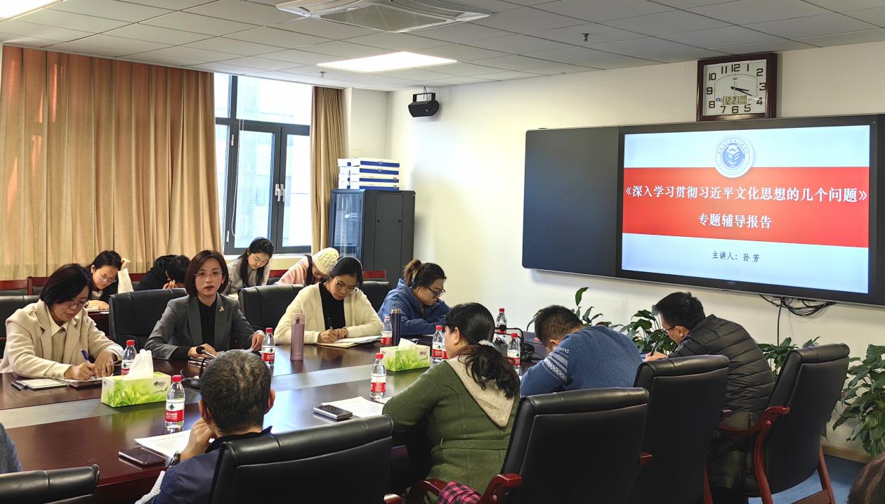 孙芳教授带领与会教师学习了习近平总书记对宣传思想文化工作作出的重要指示,从习近平文化思想提出的时代背景、重大意义、丰富内涵和实践要求等方面解读了习近平文化思想的精髓要义。认为习近平文化思想既有文化理论观点上的创新和突破,又有文化工作布局上的部署要求,明体达用、体用贯通,明确了新时代文化建设的路线图和任务书,为做好新时代新征程宣传思想文化工作、担负起新的文化使命提供了强大思想武器和科学行动指南。要认真学习领会习近平文化思想,做到学思用贯通、知信行统一,自觉贯彻落实到宣传思想文化工作的各方面和全过程。
