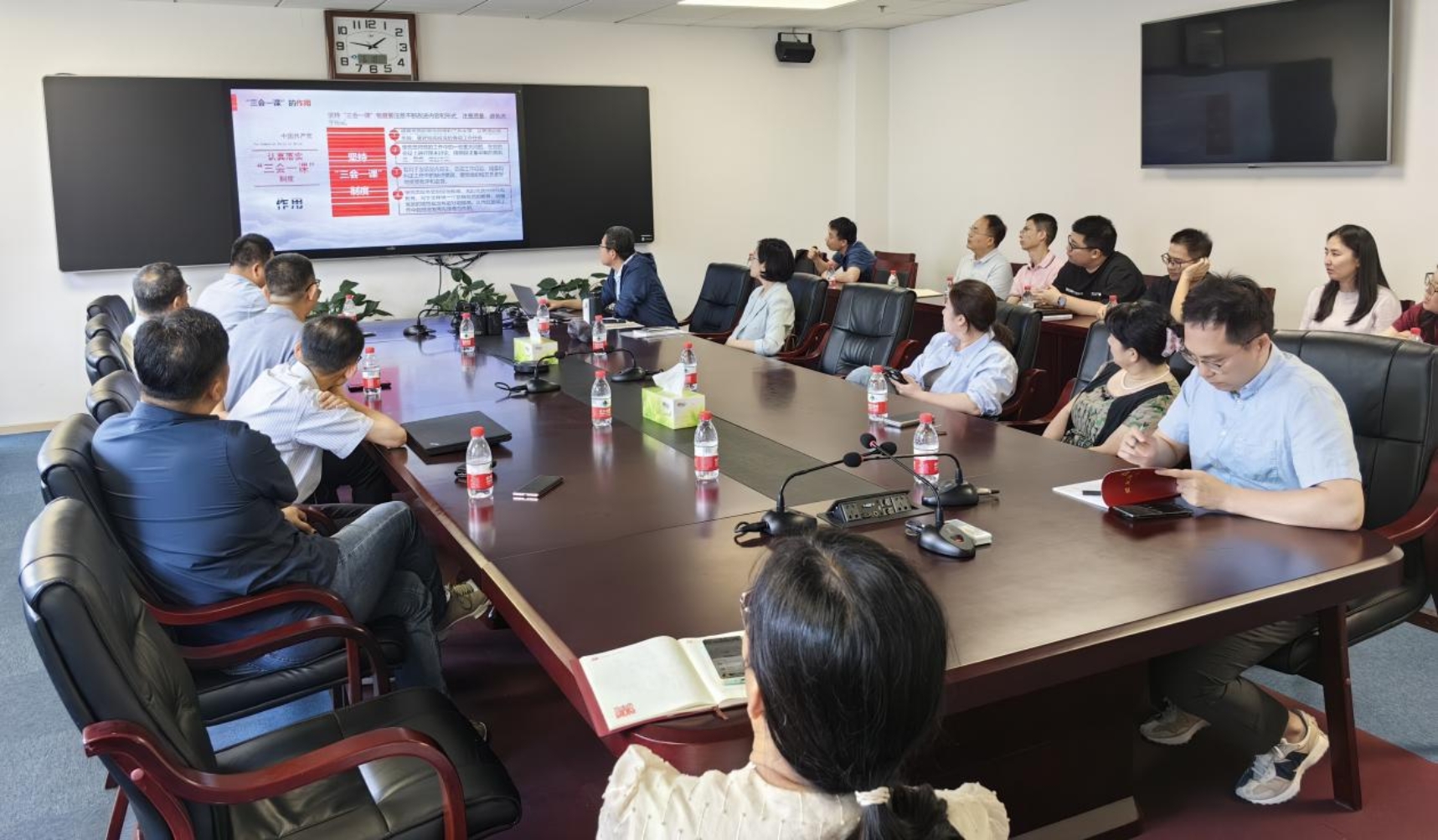 董宏伟围绕《抓好支部委员会班子建设 认真落实“三会一课”制度》主题,就高质量开展好“三会一课”、将“三会一课”与日常工作相结合等内容进行了讲解交流,帮助教工党支部进一步规范动作、提升成效。会议强调,各支部要严格落实"三会一课"制度,扎实开展主题党日、理论学习,严肃党内政治生活。将“三会一课”制度与党员实际需求结合起来、与支部中心工作结合起来,做到“三会一课”制度落实有保障、工作有指导、效果有保证,不断推进“三会一课”制度规范化、常态化、实效化。