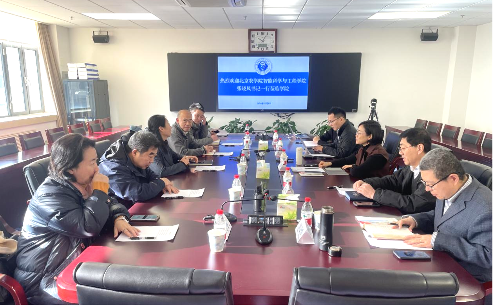 王韶华对张晓凤一行的到访表示热烈欢迎,并从学院的发展概况、师资队伍、党建思政、教育资源、平台建设等方面介绍了学院的基本情况。张晓凤对北京农学院智能科学与工程学院的学院基本情况、师生概况、学科方向等方面进行了介绍。
